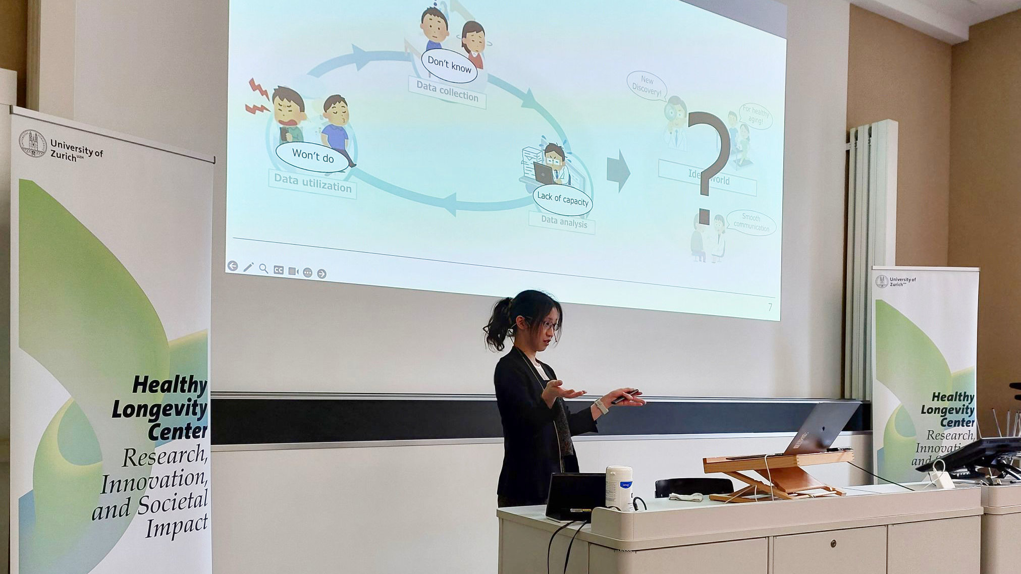 In June, Dr. Kana Eguchi from Kyoto University returned to Zurich to take part in the Longevity Days, a flagship event hosted by the UZH Healthy Longevity Center. Held annually, the event brings together researchers, clinicians, industry leaders, and policy experts to share the latest findings and explore practical solutions for healthy aging. The 2025 edition featured keynote lectures, panel discussions, and interactive workshops on topics such as AI-driven healthcare and societal strategies for longevity.